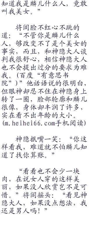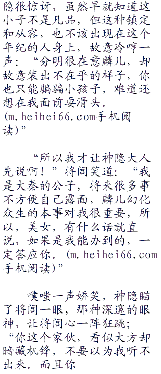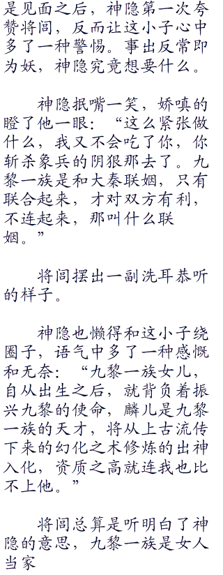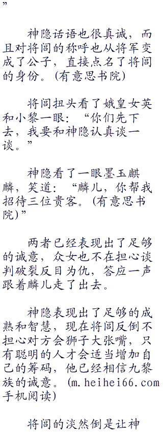 神隐娇笑一声:“将军自己暴漏短处,难道不怕我提出过分的条件。”