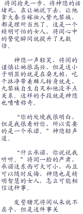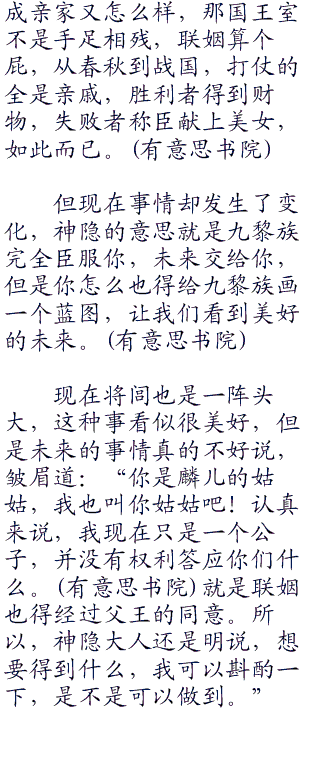 这小子一脸的诚挚话语真诚,就连神隐也猜不透他说的是真是假,脸色羞红娇嗔道:“这种事你想都别想,你知道我是麟儿的什么人。”