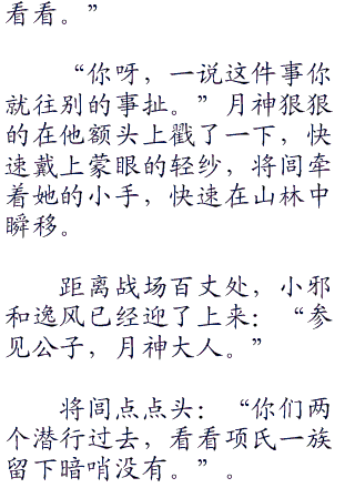 九黎族本来就擅长丛林战,小邪和逸风本来就是九黎一族的佼佼者,是神隐送给将闾的侍者。最擅长的就是偷袭暗战。两个人箭无虚发,一个个的项氏子弟倒在狼牙箭下。