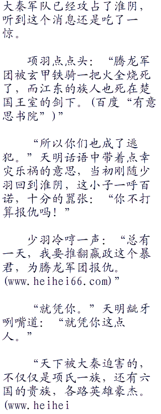 “马上收拾东西,连夜就走。”范增看了项梁一眼:“敌人的敌人就是我们的朋友,现在秦国势大,统一天下已经成了不可遏制的趋势。而大秦对腾龙军团斩尽杀绝,就是不想留下后患,而大秦罗网遍布天下,现在只有墨家经营几百年的机关城才算安全,我们即便不加入墨家,但也可以同心协力抵抗暴秦。”
