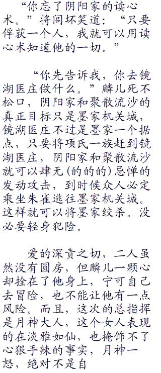 麟儿惊讶的抬起头,看着一脸坏笑的将闾:“公子,你的血......”