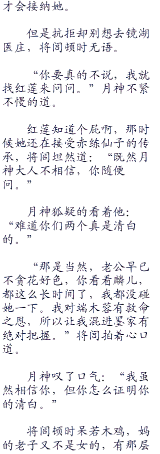 “你什么时候认识的墨家医仙。”月神惊奇的看着他:“你怎么肯定她不会害你。”