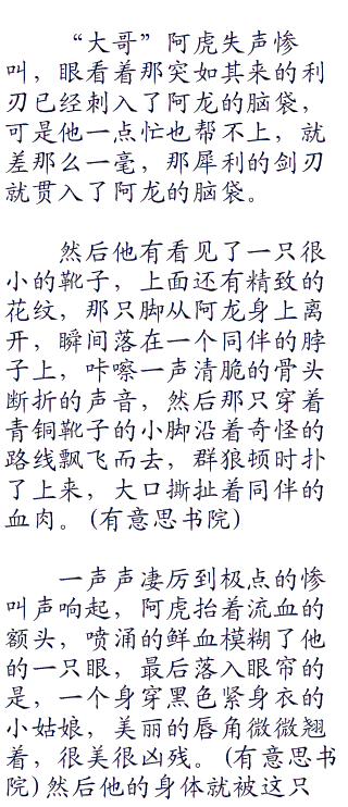 项梁和范增也看出了阿龙的目的,项梁刚想叫住阿龙,苍狼王是武功高手,不是马上战将可以比拟的,但范增瞬间就握紧了项梁的手腕,不让他说话。项氏一族每一个子弟都是从震泽锻炼出来的丛林猎人,最擅长的就是偷袭。