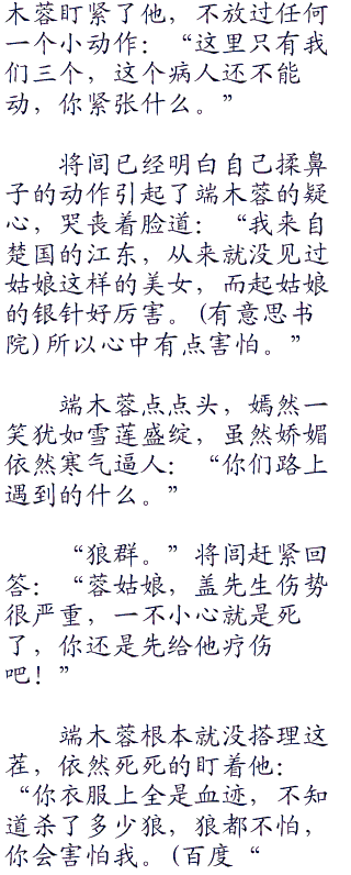 “我的意思是我笨手笨脚,而且从来就没学过医术,不知道端木姑娘留下我做什么。”将闾哭笑不得的道。