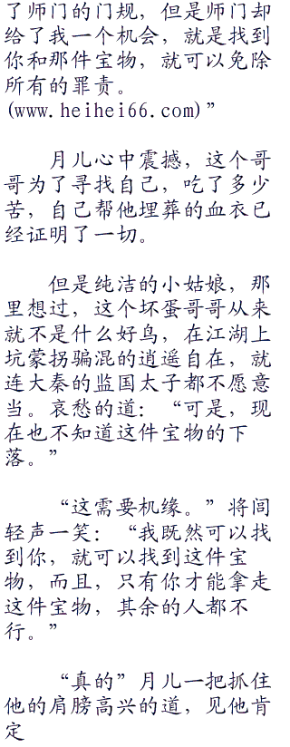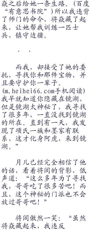 “你应该相信,我不会骗你,而且也没必要骗你。”将闾头也不回,残酷的现实,让将闾也心中凄然:“你的母亲焱是一个神秘门派的杰出弟子,行走江湖的时候,不小心将这个门派传承宝物给丢失了。