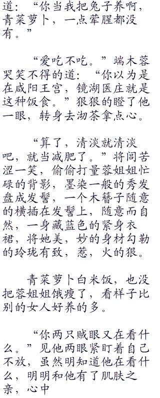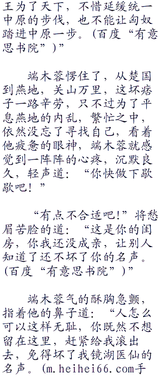 端木蓉发泄出心中的苦闷,人也舒坦了许多,靠在将闾的怀中,心中奇怪至极,这坏痞子从不吃亏的性格,今天怎么老老实实的让自己捶打了。在他衣服上擦干眼泪,悄悄的抬头一看,却见将闾目光温柔的看着自己,眼神却有说不出的疲惫。