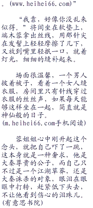 “干什么”将闾目瞪口呆的看着端木蓉:“我可是男人。”