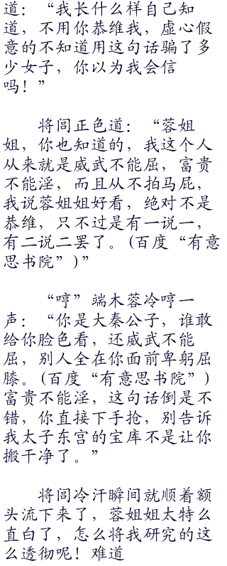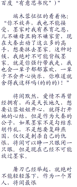 “你还敢说。”端木蓉头也不回,指缝中再次露出三根花雨银针:“信不信我扎死你。”