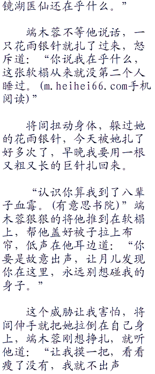 端木蓉刚刚松了口气,就差点被他这句话气晕过去,这混蛋身上只有一条丝被,这要是让月儿看到,有多少嘴也说不清了,指缝间露出花雨银针的锋芒,低声怒道:“你是不是想让你扎你。”