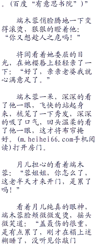 看着焦急的端木蓉,将闾又是好气又是好笑,早干什么了,今天晚上光给我出难题,正色的看着她:“没事,月儿年纪还小,不懂男女之间的事,再说我们是清白的,虽然我没穿衣服。”