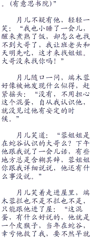“啪啪”门板响了两声,月儿在外面叫道:“蓉姐姐,哥哥在你这里吗!马上要开饭了。”
