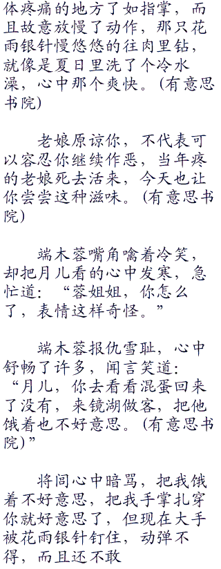 “没有啊,大哥哥很好的。”月儿嘴中说到,一颗心儿也加速跳了起来,今天大哥哥的大手,可是在小蛮腰上摸了半天。