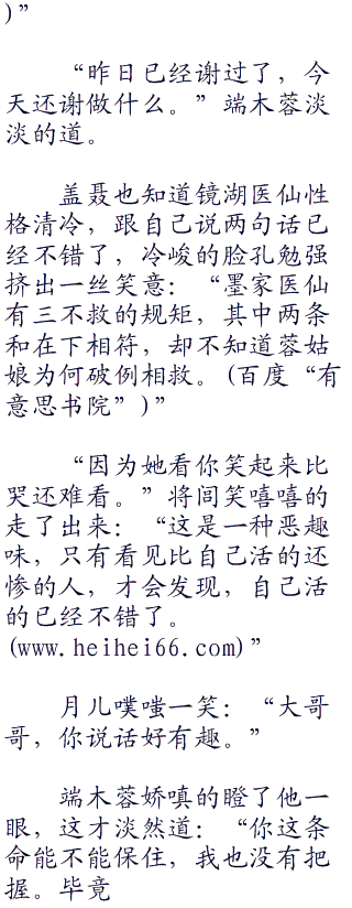 “好啊!好啊!”将闾心花怒放。就听端木蓉接着又道:“我去陪月儿。”