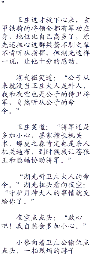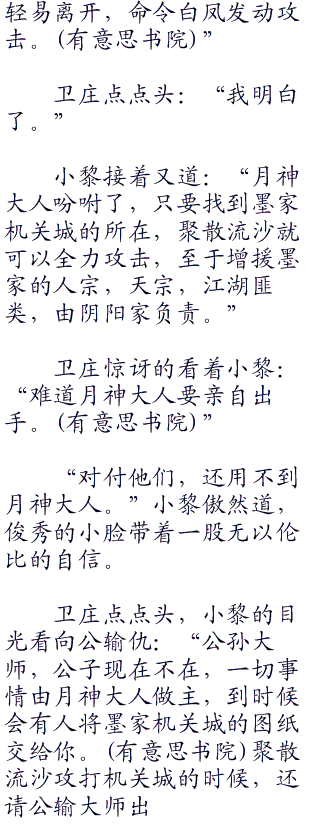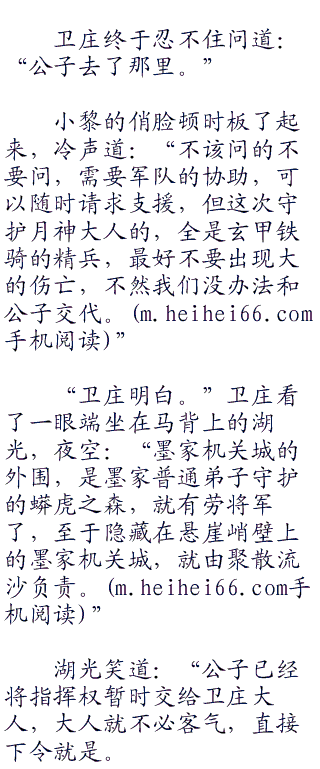 卫庄点点头:“上面只有班大师,盖聂和天明,没有别人,我一直没看见公子。”