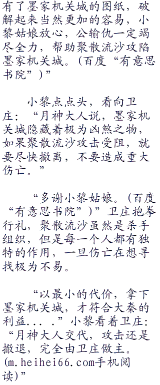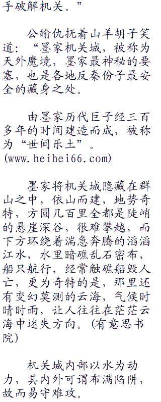 “公输家族不是东西,公输是一个复姓,也是以精通机关术扬名天下,三百年来一直与墨家争斗。”盖聂看到班大师若有所思,低声道。