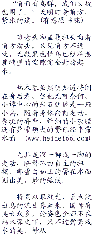 脱离鸟群,天明也不敢在玩花活,盖聂不仅仅是吓得,还失血过多,正坐在朱雀上慢慢的捆扎自己的伤口。