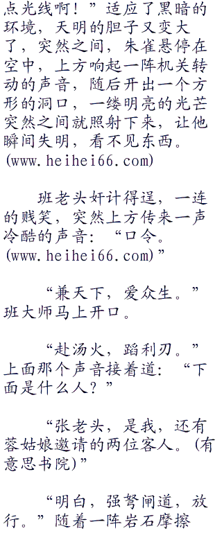“别废话。”现在班老头也没心情和天明斗嘴:“这里我闭着眼睛都能飞,小子,小心点,要转向减速了,掉下去可别怨我,天明大侠埋骨墨家机关城也算是一段佳话。”