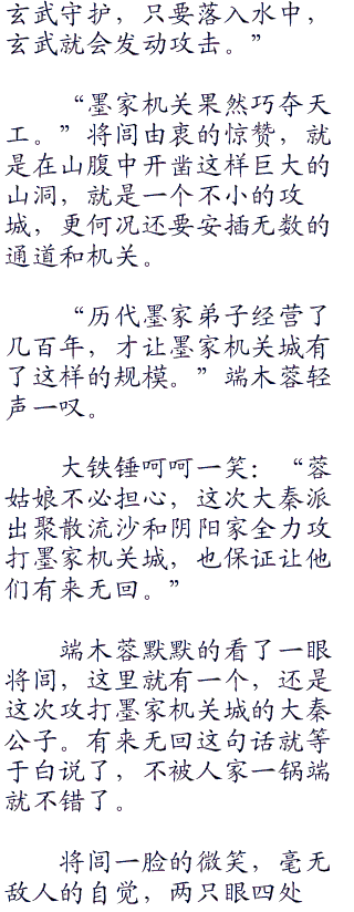 端木蓉说的极为隐晦,但将闾已经听明白了,出现青铜蟒蛇印记的地方就是死路,墨家不知道安装了多少杀人机关在里面,在这样密集的森林,不懂得分辨道路就是死路一条。