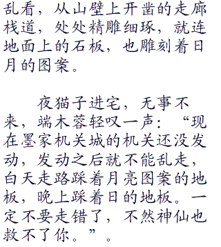 将闾两眼不离高渐离的左右,在密林中钻行了几里路,才发现在高渐离是按照古树树干上的印记在前行。