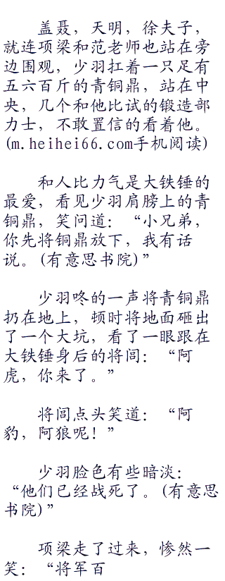 将闾心知肚明,能跟墨家弟子比试力气的,除了少羽没有别人,但这孙子现在是自己名义上的少主,虽然很不想去,也只能点点头。
