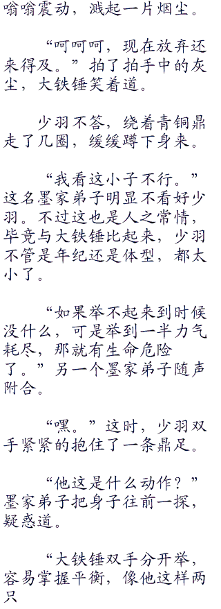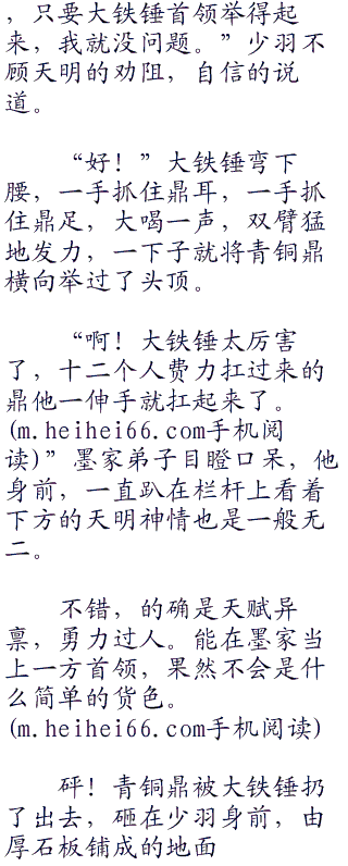 “原来是月儿姑娘。见过端木统领,大铁锤统领。”墨家弟子笑嘻嘻的躬身行礼:“听说新来的那个少年,和锻造部的兄弟比试力气,竟然战胜了好多人。”