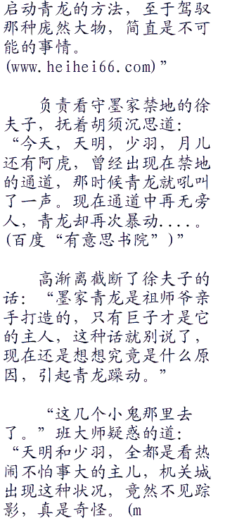 这就是墨家机关城最大的秘密,但是当年祖师也曾说过,只有心底良善,不被这股神秘力量影响心智的人,才可以驾驭这条青龙。