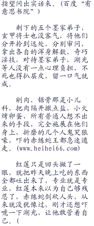 “我说,你们问我什么我就说什么。”领头的墨家弟子不顾同伴鄙夷的眼神,失声大叫。
