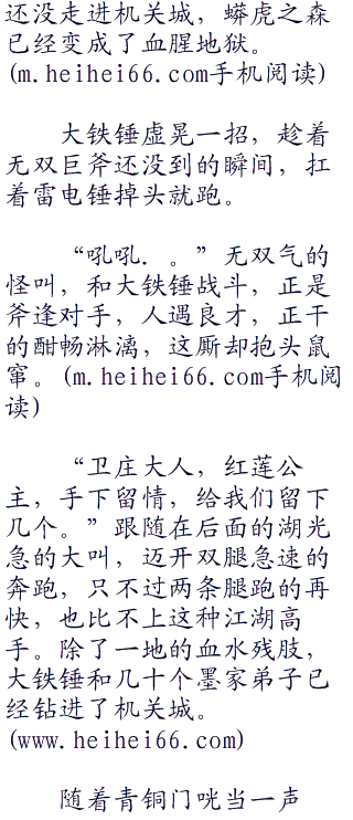 墨家弟子全都被吓破胆了,象征性的抵抗一下,转身就跑,只恨爹娘少生了两条腿,心中唯一的念头就是逃出蟒虎之森这座给秦兵设置的屠宰场。