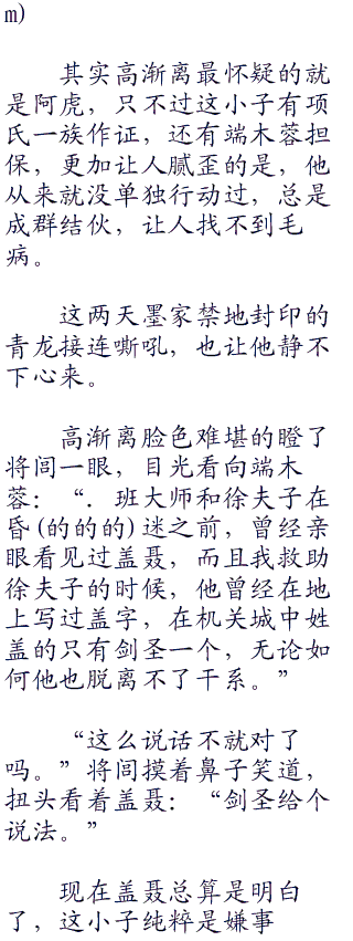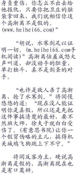 将闾放下月儿,没敢说一句,而是滔滔不绝说了几十句:“你以为你是个什么东西,拿着水寒剑