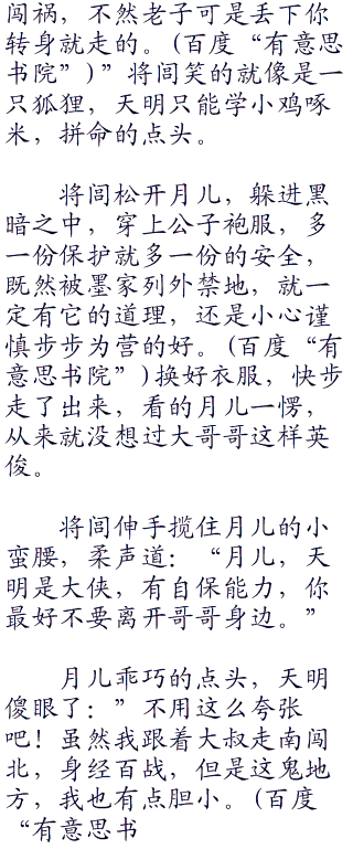 天明悻悻的看了将闾一眼,就是口无忌惮,现在也不敢乱说一句,这位可不是大叔,也不是少羽,完全可以扔下自己不管。