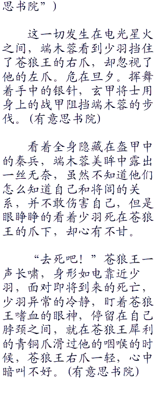 少羽也是热血激扬,从回廊一跃而下,挥舞着拳头,迎上了玄甲将士的战剑。