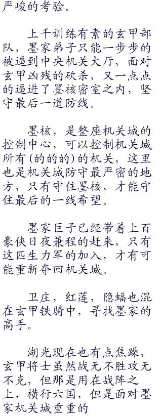 玄甲将士呼喊一声,剑阵旋转卷向了墨家弟子。