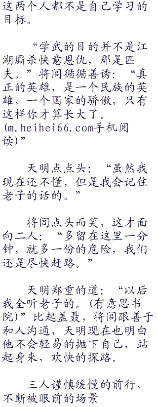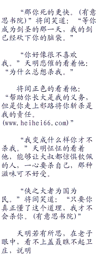 天明泄气道:“老子,你就不会说点好话,我要成为大叔那样的剑客。”