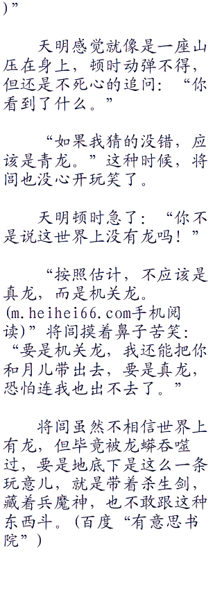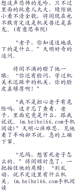 天明从地上一蹦而起,小脸煞白结结巴巴道:“上次在禁地门外,徐夫子就曾经说过,墨家禁地封印着一条巨龙,听见的也是这种怪声音。”