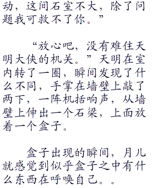 “老子,是你救了我。”天明似乎忘记了刚才的一切,但记忆中依然记得将闾,月儿。