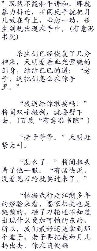 但倒霉催的,将闾还是晚了一步,天明的手指碰到盒子的瞬间,就听咔嚓一声机括接连响起,头顶也传来月儿焦急的声音:“哥哥小心身后。”