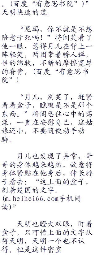 “啪”的一声,将闾拍开天明摸向盒子的手:“尼玛的,什么时候才能改了毛手毛脚的臭毛病,这里到处是机关,你想害死老子。”