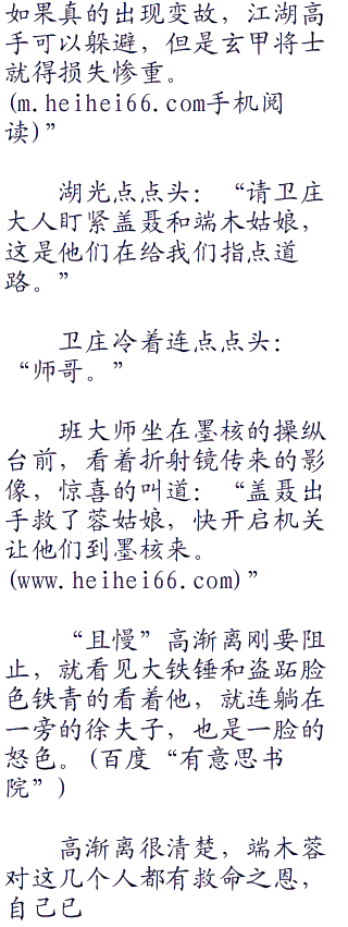 “盖聂和端木蓉想要回到墨家众首领隐藏之处,这就是我们攻破机关大厅的好机会。”湖光嘴角荡漾着笑意。