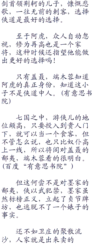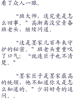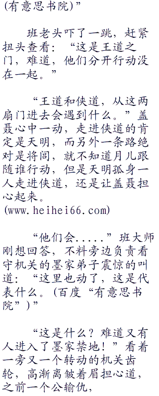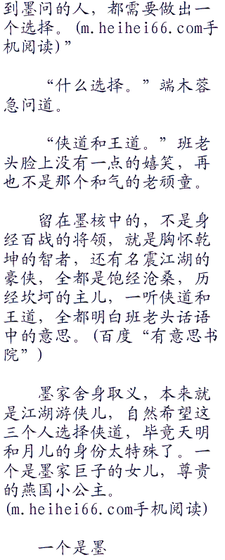 月儿稳定了一下骚乱的心神,小脸红红的犹如火烧,就听他问道:“墨家提倡兼爱非攻,为什么会出现侠道王道,这和墨家的教义不敷啊!”