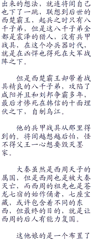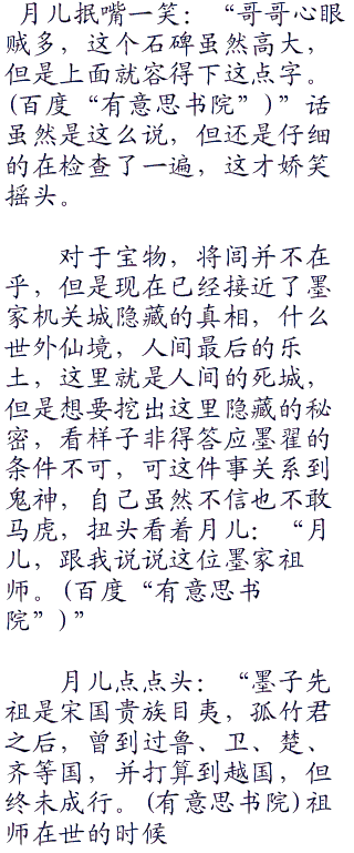 将闾嘴角泛出冷笑,看的月儿心中也是一寒,轻声道:“哥哥,墨家祖师留言叮嘱,恐怕和藏在这里的东西有关。”