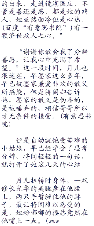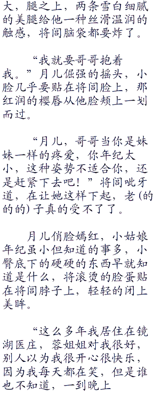 不管是谁,被一个高贵美丽的小女孩当成了软榻,在上面睡了一夜,月儿睡的这样安然,就这样放心的将自己交给了哥哥。