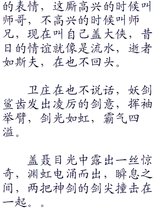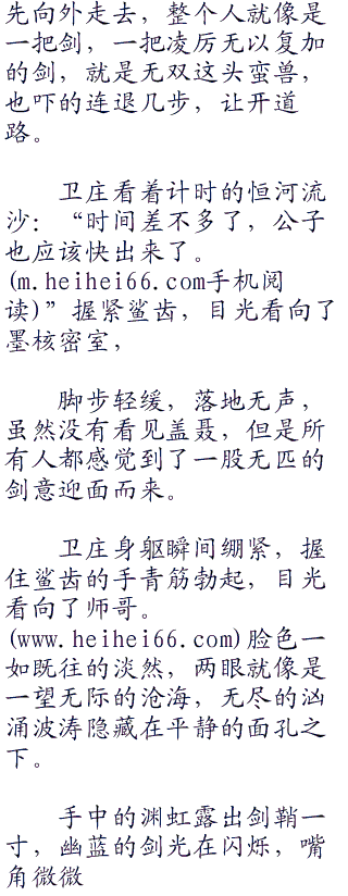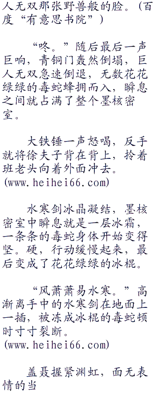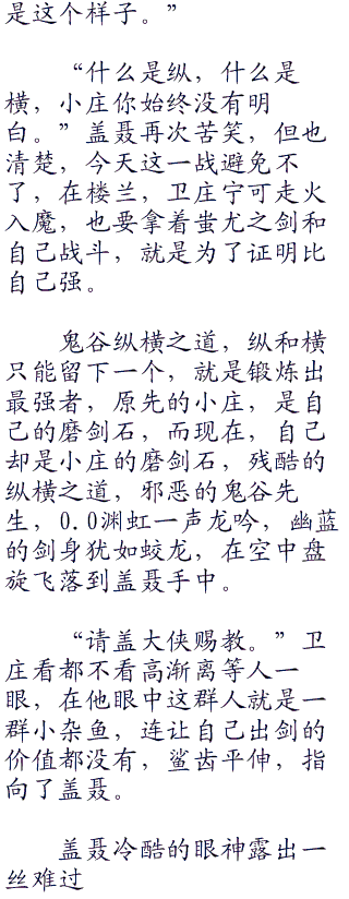 盖聂的话想当剪短,但却说出了残酷的事实,班老头和徐夫子功力微弱,在这么下去,恐怕等不到巨子归来,就会被巨大的震荡力震死。
