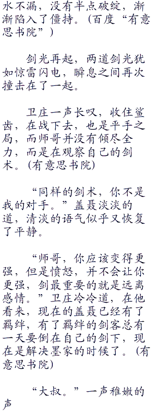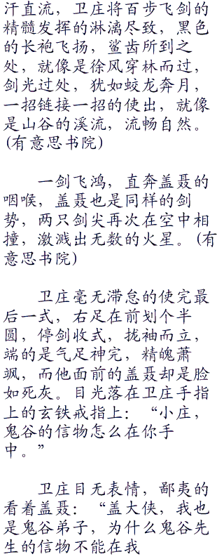 卫庄的招式似是而非,应该向左边的,他偏刺向右边,应该崩而拔起,他却沉肩在洗,右去之势俨然未至饱和,时而能左、忽而能右;下沉之力含虚若飘,似欲上拔、终又下坠。