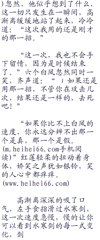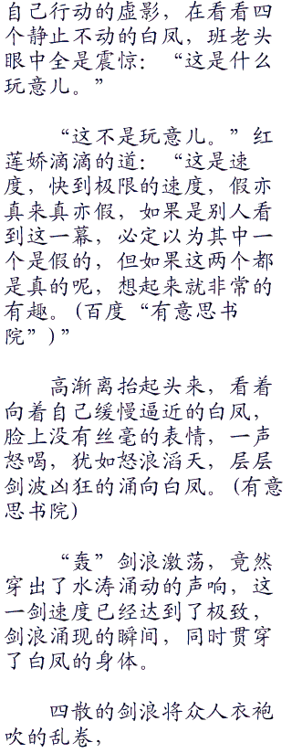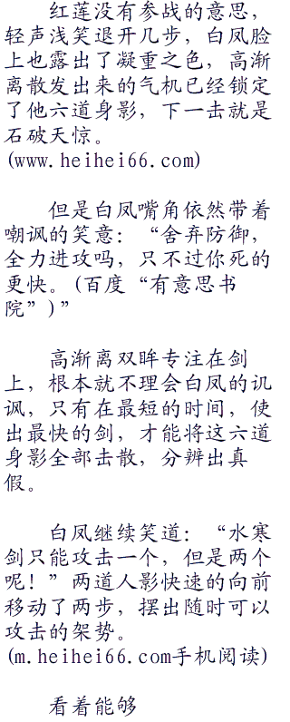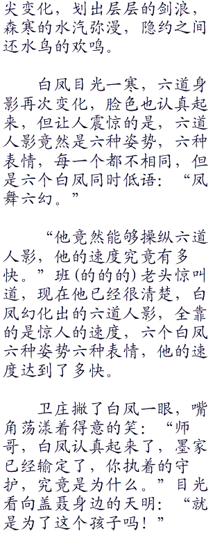 六道身影,六个白凤,分不出那个是假,那个是真,似乎这六道身影,每一个都在发动攻击,每一次的攻击都可以化虚为实。每一击都足以致命。