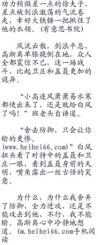 高渐离停止了攻击,嘴角露出讥讽的笑意,看着白凤道:“难道你只会躲吗。”