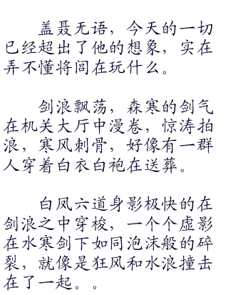 高渐离置若罔闻,专心的凝结真气,今天是生还是死,就看盖聂和卫庄,自己和白凤。
