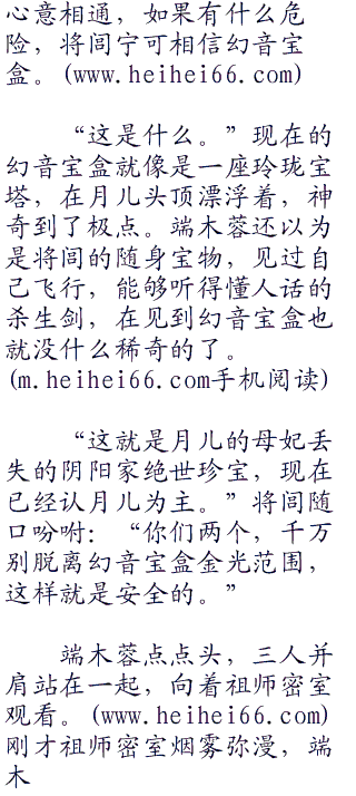 二女同时点头,端木蓉的:“月儿的安全交给我。”