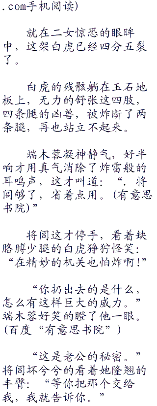 端木蓉香汗淋漓,惊恐的看着白虎低声道:“将闾,现在应该怎么办.。”