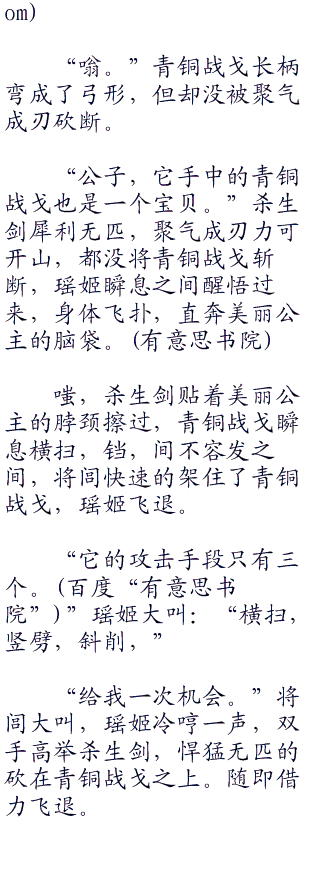 瑶姬的攻击方法完全是暴力加野蛮,杀生剑在她手中化成了一团光影。接连不断的砍在青铜战戈上,而聚气成刃更加的威猛,完全是大开大合,青铜战车瞬息之间就被三人的战斗分切割成四分五裂。