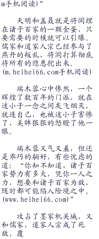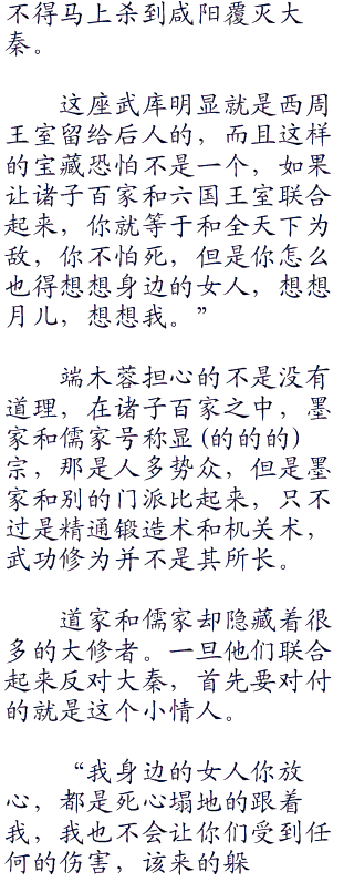 端木蓉心中清楚,这小子对墨家的仇恨已经到了不可化解的地步,非得斩尽杀绝不可,但是天明有盖聂守护,想必还是能够逃脱的。